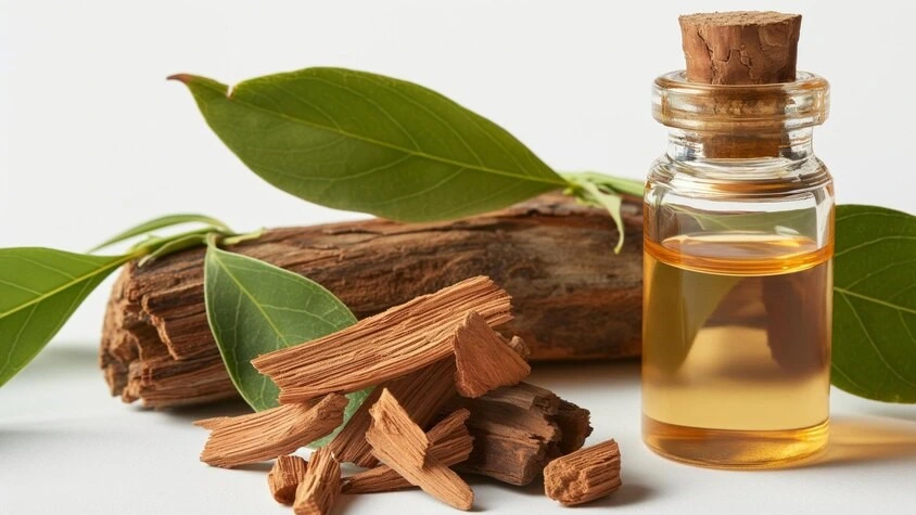 Bahan alami dari formula Prostanore, dengan sebotol minyak esensial dan tanaman dalam bentuk mentahnya, menonjolkan kemurnian produk. Lipoken​